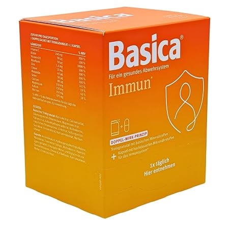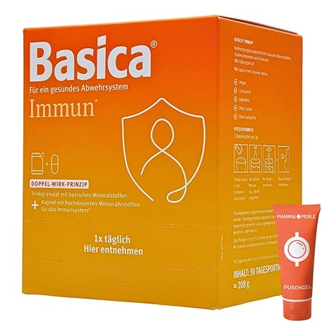 Sản phẩm Basica Immune 1 x 30 Double Sachets I Drinking Granules + Capsule I for the Acid-Base Balance I Vitamin C, Zinc, Selenium, Vitamin D I for the Body's Immune System I Economy Set Plus Pharma Perle đang được bán với giá ưu đãi là $65.3019 tại nước Đức.