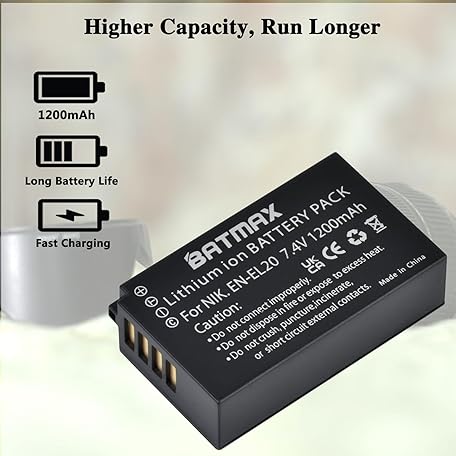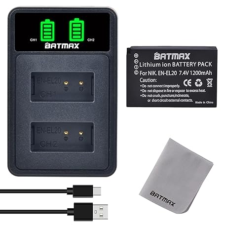 Sản phẩm Batmax EN-EL20 Battery and Charger for Nikon EN-EL20, Nikon EN-EL20a, Nikon Coolpix P1000, Nikon 1 J1, Nikon 1 J1/1 J2/1 J3/1 S1/1 V3, Blackmagic Pocket Cinema Camera đang được bán với giá ưu đãi là $26.8903 tại nước Đức.