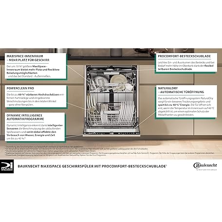 Thông tin sản phẩm Bauknecht B7U HS51 X Undermount Dishwasher, 60 cm, 15 Place Settings, PowerClean Pro-Effective High Pressure Nozzles, Natural Dry, Automatic Door Opening, Better Drying, MaxiSpace-More Interior
