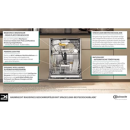 Thông tin sản phẩm Bauknecht B8I HP42 LC Fully Integrated Dishwasher, 60 cm, 15 Place Settings, PowerClean Pro-Effective High Pressure Nozzles, Natural Dry, Automatic Door Opening, Better Drying, MaxiSpace-More Interior