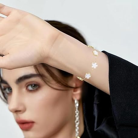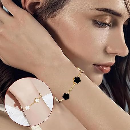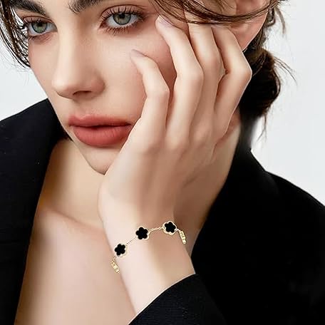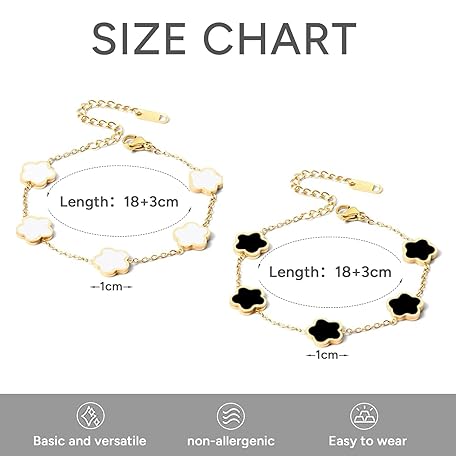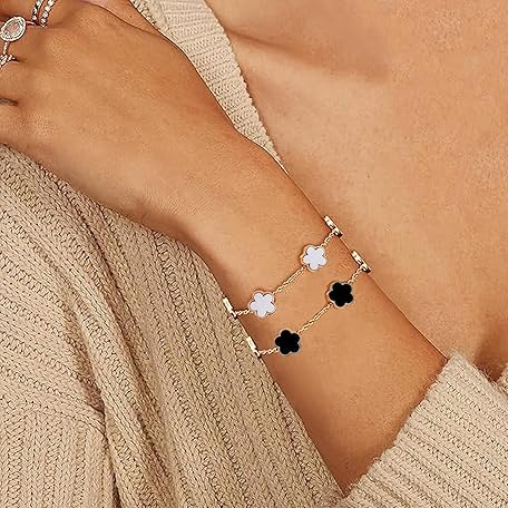Thông tin sản phẩm Bcenoilua Women's Clover Bracelet, 18 K Gold-Plated, Four Leaf Clover Bangle, Jewellery Set, Stainless Steel, Adjustable Lucky Bracelet with Clover, Friendship Bracelet for Women, Girls, Pack of 2
