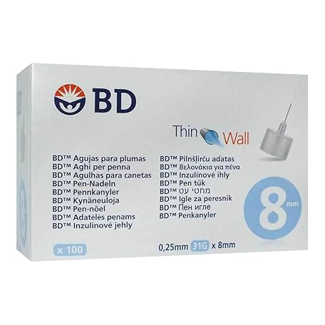 BD Thin Wall Pen Needles 0.25 31 G x 8 mm Pack of 100