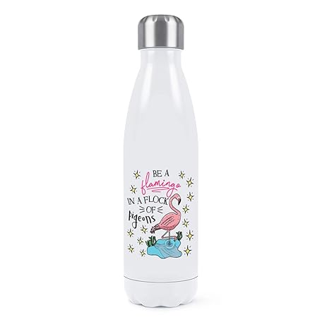 Be A Flamingo in Flock von Tauben Doppelwand Wasserflasche Isoliert Edelstahl Sports Getränke 500ml Weiß