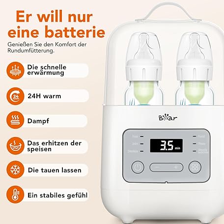 Sản phẩm Bear 6-in-1 Steriliser Bottle Warmer Baby, 3-7 Minute Double Cup Bottle Warmer for 0-6 Months, Safe Baby Food Warmer with Steam Steriliser, Warming/Defrosting Food (Gift Bottle Clamp) đang được bán với giá ưu đãi là $35.6648 tại nước Đức.