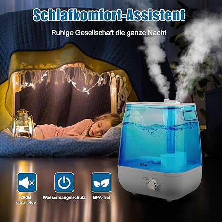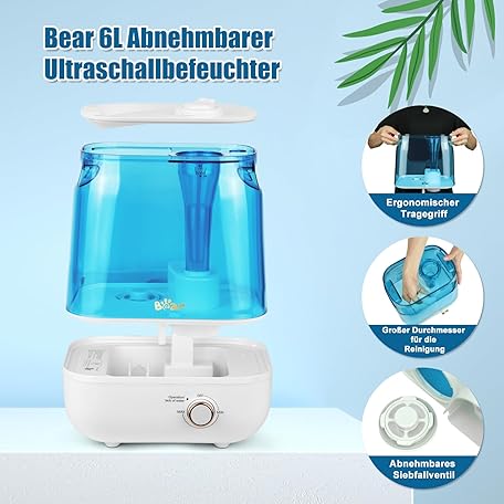 Sản phẩm Bear 6L Top Filling Two Outlet Nozzles Humidifier, Ergonomic Carry Handle, with Aromatherapy Tray, 360° Expandable Steam Nozzle, Automatic Shut-Off, 28 dB Ultra Quiet for Babies and Plants đang được bán với giá ưu đãi là $51.1428 tại nước Đức.