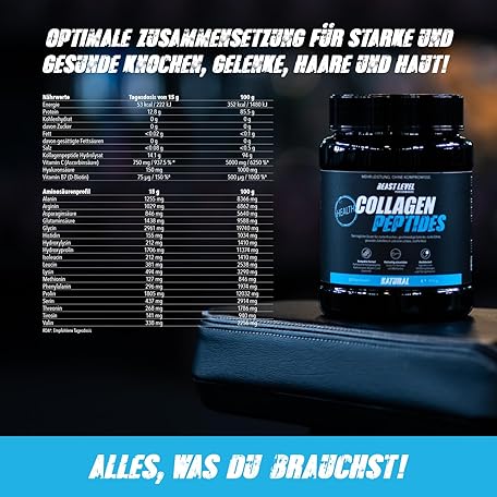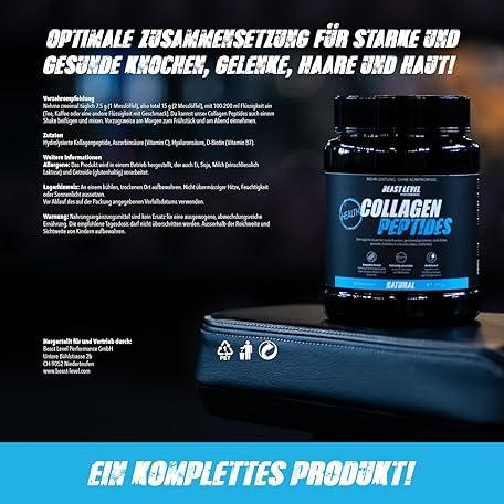 Sản phẩm Beast Level Performance Collagen Peptides - High Quality and High Dose Collagen Hydrolysate Powder for Healthy Bones, Teeth, Skin & Hair - Easily Soluble Without Sweetness and No Additives đang được bán với giá ưu đãi là $37.6377 tại nước Đức.