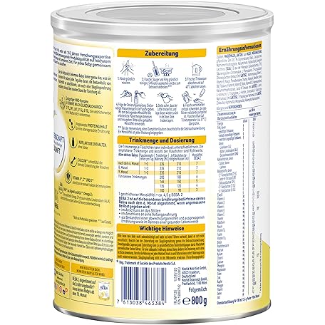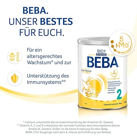 Thông tin sản phẩm BEBA 2 Follow-on Milk After 6 Months, Baby Food with 5 HMO Complex, Lactose Only, No Palm Oil, Pack of 3 (3 x 800 g)