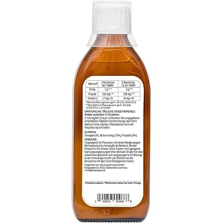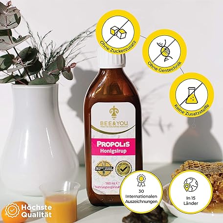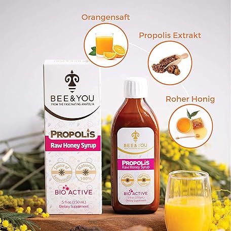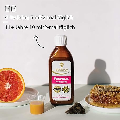 Sản phẩm BEE&YOU Propolis Honey Syrup for Children with Vitamin C, Dietary Supplement for Children, 100% Natural and No Additives, 33 International Awards, 12 Certificates, Gluten Free, Sugar Free đang được bán với giá ưu đãi là $19.1404 tại nước Đức.