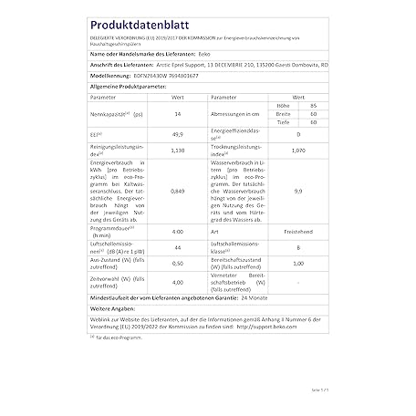 Thông tin sản phẩm Beko BDFN26430W Dishwasher 60 cm, Freestanding, Undermountable, for 14 Place Settings, 6 Programmes, 4 Additional Functions, 3 Sink Levels, HygieneIntense, SelfDry, Program for Half Load, White