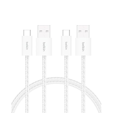 Belkin 2 Pack Braided USB-A to USB-C Charging Cable, 1.5 m, 15W, Flexible Fast Charging Cable, USB-C Cable for iPhone 16 and 15, Galaxy S25, Pixel 9, iPad Pro etc - White