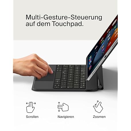 Thông tin sản phẩm Belkin Pro Bluetooth-Tastatur mit Hülle und magnetischem Ständer, iPad Tastatur, Multi-Gesture-Steuerung, Apple Pencil magnetische Befestigung, QWERTZ, Multimedia-Tasten für iPad Air 10,9 und Pro 11