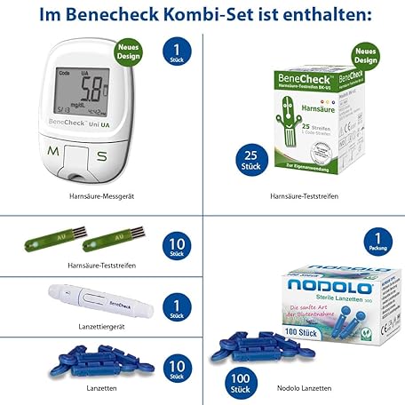 Sản phẩm BeneCheck Premium Harnsäure-Messgerät Bundle – inkl. 35 Teststreifen & 100 Lanzetten | Uric Acid Testgerät zur Gichtkontrolle | präzise & einfach zu bedienen đang được bán với giá ưu đãi là $70.5557 tại nước Đức.