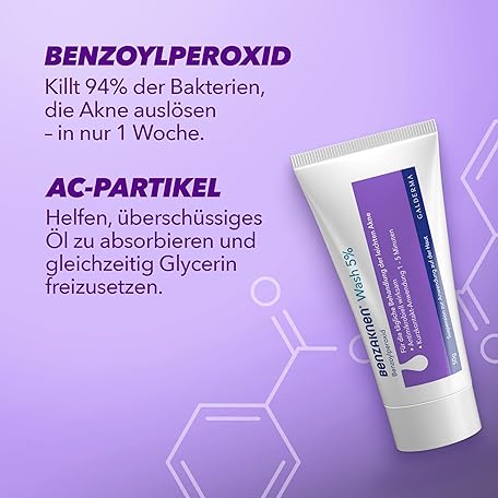 Thông tin sản phẩm BENZAKNEN Wash 5%, 2 x 100 g, wash gel against pimples and blackheads for light acne on face and body, suitable for more sensitive skin, with BPO (benzoyl peroxide), dermatologically tested