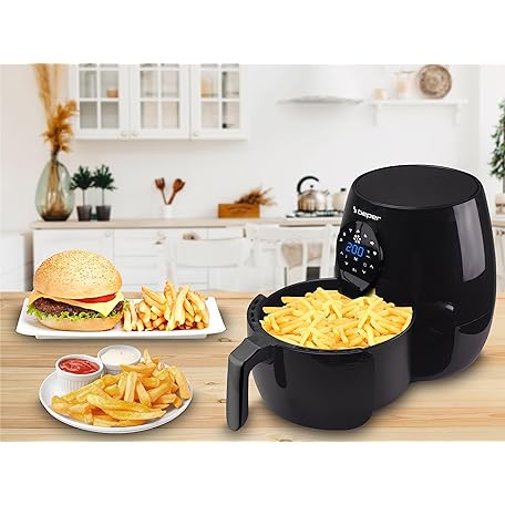 Sản phẩm BEPER P101FRI050 Hot Air Fryer, Oil Free, 5 Litres, Touchpad, 7 Preset Programmes, Dimmable up to 200°C, Timer 60 Minutes, Automatic Shut-Off, Black đang được bán với giá ưu đãi là $76.6706 tại nước Đức.