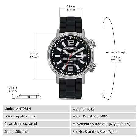 Sản phẩm BERNY Diving Watch for Men Automatic Mechanical Watch 20ATM Waterproof Sapphire Glass Super Bright đang được bán với giá ưu đãi là $186.6298 tại nước Đức.