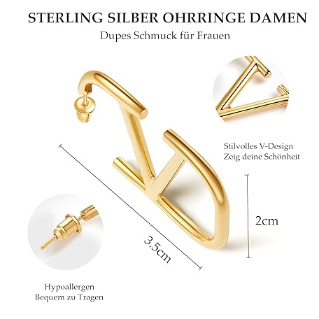 Sản phẩm Berry Only V Earrings Golden Earrings Women's Sterling Silver Earrings Hypoallergenic Gold-Plated Earrings Letter V Geometric Drop Earrings Gold Hanging Dupes Jewellery Gifts for Women Valentine's Day đang được bán với giá ưu đãi là $19.0532 tại nước Đức.