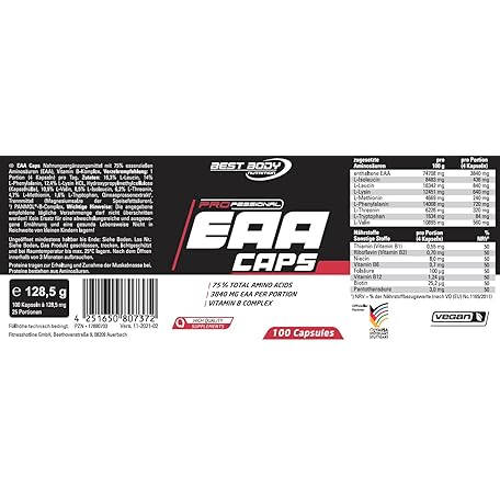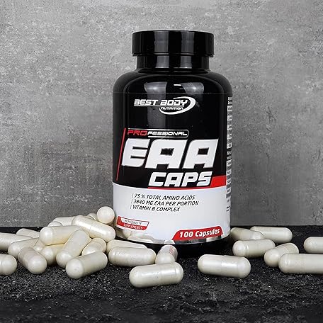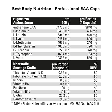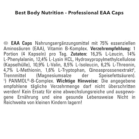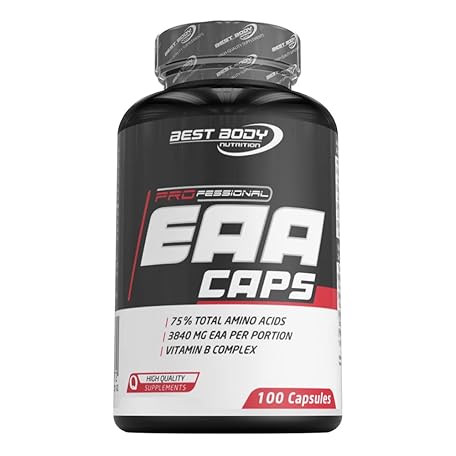 Best Body Nutrition Professional EAA Caps - vegan - hochdosierte Aminosäuren Kapseln mit 3840 mg EAA pro Portion - mit Vitamin-B-Komplex - Alternative zu EAA Pulver - 100 Stück pro Dose