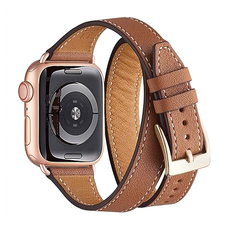 Bestig Armband kompatibel mit Apple Watch, 49 mm, 46 mm, 45 mm, 44 mm, 42 mm (Serie 3, 2, 1), für Damen und Herren, schlankes Armband aus echtem Leder, Doppeltour-Design, schlankes Armband für iWatch