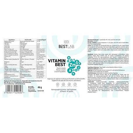 Sản phẩm BESTLAB VitaMinBest Dietary Supplement - Complex of Vitamins and Minerals - Energy Enhancer for Women and Men - Energy Supplement - 60 Capsules đang được bán với giá ưu đãi là $44.8971 tại nước Đức.