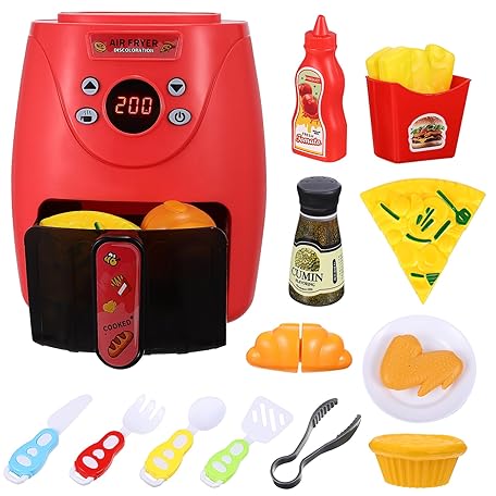 BESTonZON Luftfritteuse Spielzeug Mit Farbwechsel Und Spielfutter Interaktives Küchenspielset Für Kinder Zur Förderung Von Feinmotorik Und Hand-Auge-Koordination
