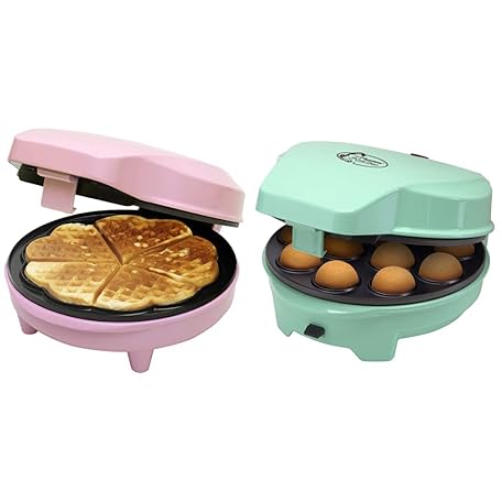 Bestron Heart Waffle Maker + 3-1 Cake Maker with 3 Interchangeable Baking Plates: Donuts, Muffins and Cake Pops, Pink/Green