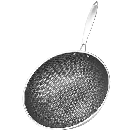 BESTYASH Honeycomb wok pan made of stainless steel for home use, compatible with induction cooker, electric stove and gas stove with handles for easy handling and cleaning