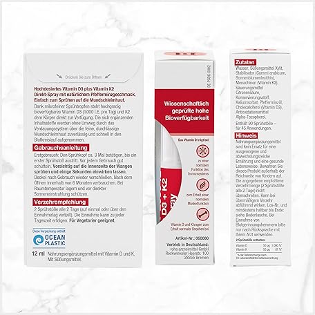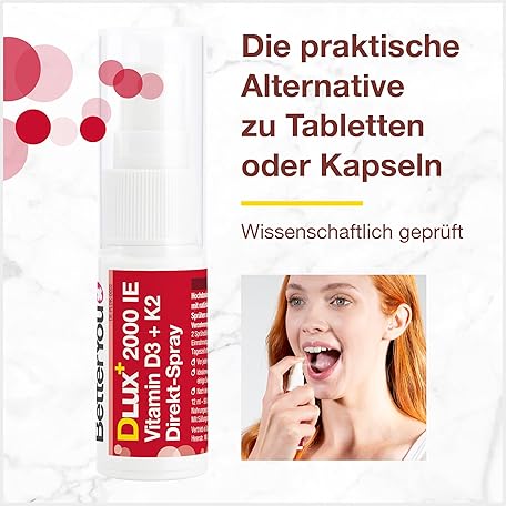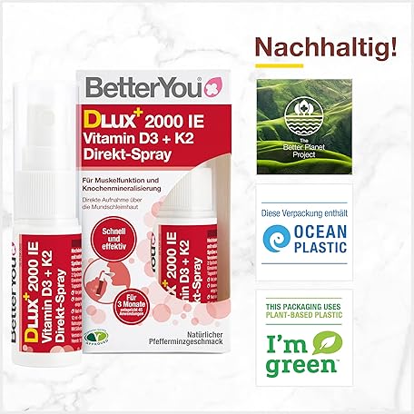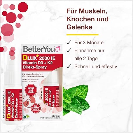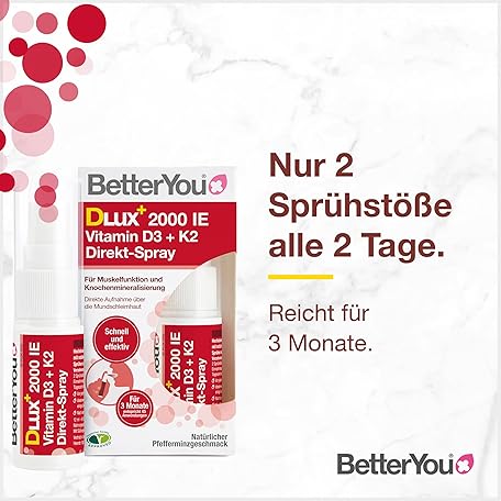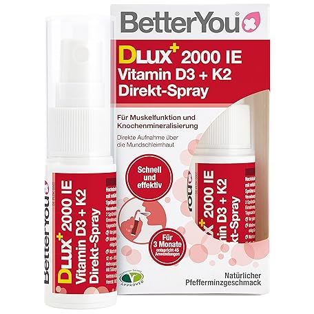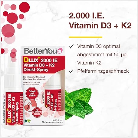 BetterYou Vitamin D3+K2 Direct Spray - For Spraying on the Oral Mucosa - High Bioavailability - with Natural Peppermint Flavour - Practical, Fast & Effective - 12 ml