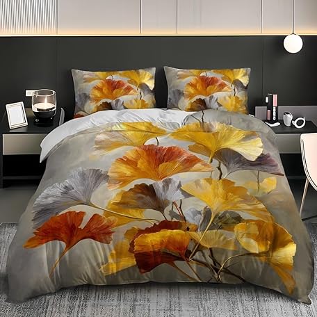 Bettwäsche Aquarell Ginkgo BläTter Muster Hypoallergen Microfaser Bettbezug Gelb Bettwäsche Set und Kissenbezug 80x80 cm Reißverschluss für Einzelbett 135x200 cm