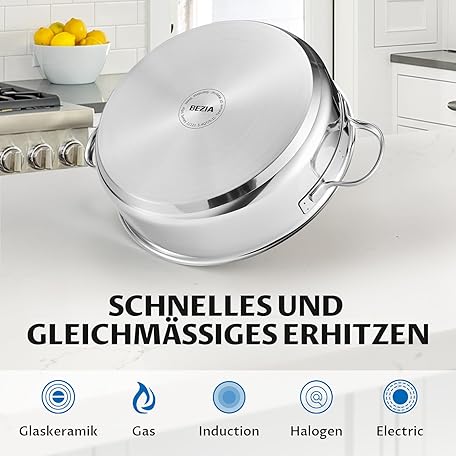 Thương hiệu BEZIA là cái tên nổi tiếng được rất nhiều khách hàng trên thế giới chọn lựa. Với kiểu dáng đẹp mắt, sang trọng, sản phẩm BEZIA Sauté Pan 28 cm Induction Cooker with Lid 5.1 L Stainless Steel 18/10 Coated Frying Pan Serving Pan Suitable for All Hobs Oven-Safe High Rim là sự lựa chọn hoàn hảo nếu bạn đang tìm mua một món cho riêng mình.