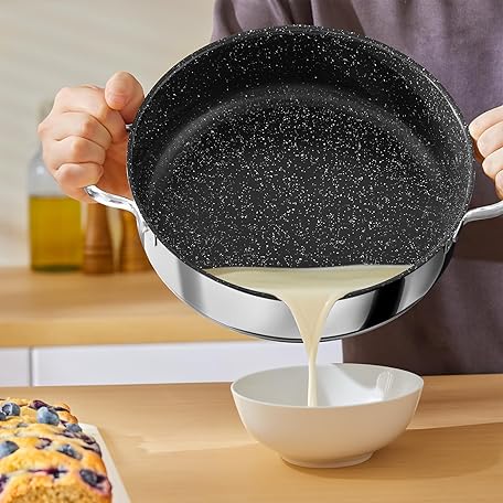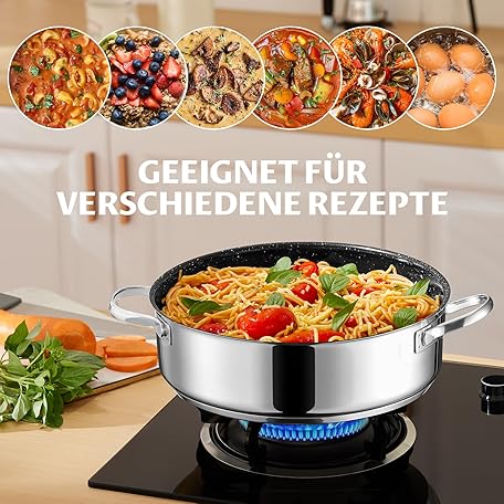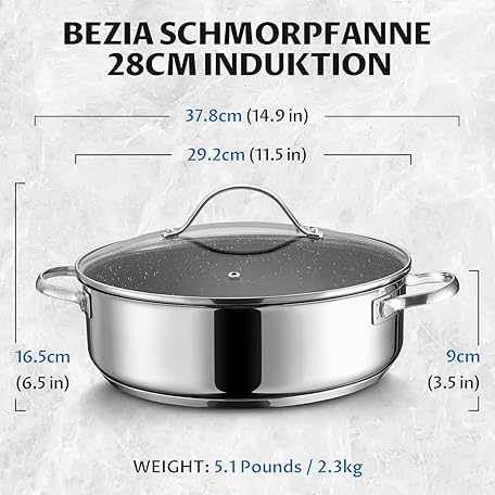Sản phẩm BEZIA Sauté Pan 28 cm Induction Cooker with Lid 5.1 L Stainless Steel 18/10 Coated Frying Pan Serving Pan Suitable for All Hobs Oven-Safe High Rim đang được bán với giá ưu đãi là $75.864 tại nước Đức.