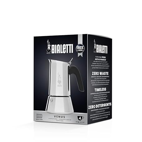 Thông tin sản phẩm Bialetti - Venus Induction Italian Espresso Machine, Stainless Steel, Suitable for All Types of Plates, 4 Coffee Cups (170 ml), Silver