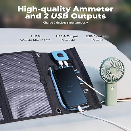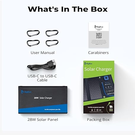 Thông tin sản phẩm BigBlue 28W Portable Solar Charger 2-Port USB(5V/4A total), IPX4, Solar Panel with Digital Ammeter and Zipper for Protection - for Recharging USB Devices -iPhone Android GoPro etc.