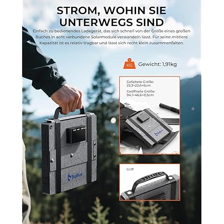 Sản phẩm BigBlue 60 W Foldable Solar Charger, Portable ETFE Solar Panel QC3.0 + PD45W + 22.2 V DC Output, IP68 Waterproof and Angle Stand, for Emergency Power Supply, Camping, Compatible with Smartphone Tablet đang được bán với giá ưu đãi là $127.9987 tại nước Đức.