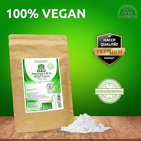 Sản phẩm Bio Protect MSM Powder 500 g - 99.9% Pure - No Additives - Vegan - 1/2 kg Premium MSM - Methylsulfonylmethane - Organic Sulphur đang được bán với giá ưu đãi là $20.0887 tại nước Đức.