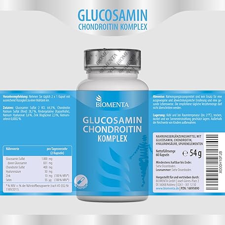Sản phẩm Biomenta Joint Complex Forte Combination Supplement, with Unique Glucosamine + Chondroitin + Hyaluronic Acid + Zinc + Selenium, 60 High Dosage Capsules đang được bán với giá ưu đãi là $16.4699 tại nước Đức.
