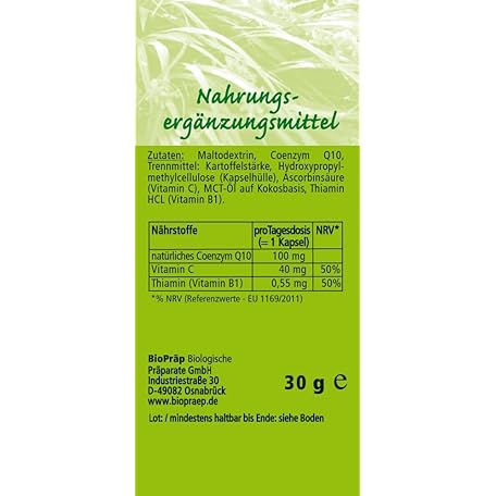 Sản phẩm BioPräp Coenzym Q10 100 Plus | 60 Zellulose Kapseln | vegan | produziert in Deutschland | zertifizierte Produktion đang được bán với giá ưu đãi là $29.3537 tại nước Đức.