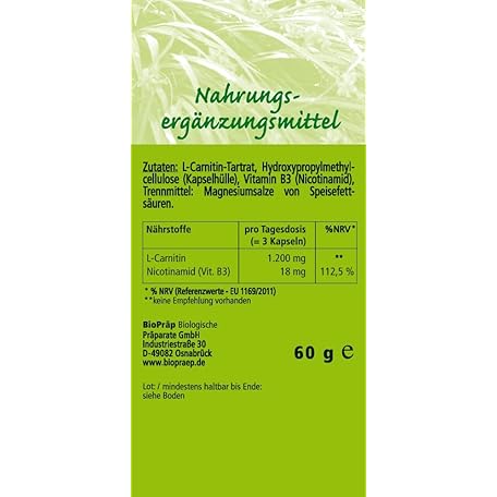 Thông tin sản phẩm BioPräp L-Carnitine 400, 90 Capsules, Vegan, Produced in Germany, Certified Production