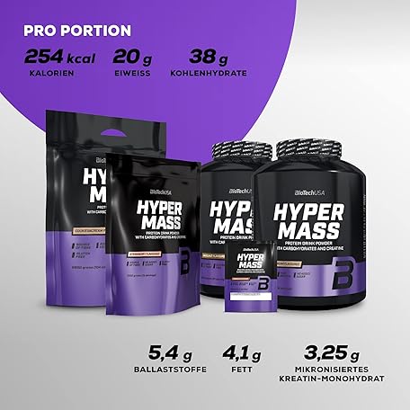 Thông tin sản phẩm BioTechUSA Hyper Mass - Mass Gainer mit Kohlenhydraten & Proteinmischung | Mikronisiertes Kreatin | Glutenfrei, 1 kg, Vanille