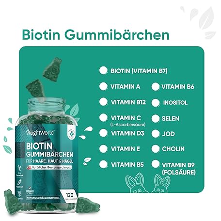 Thương hiệu WeightWorld là cái tên nổi tiếng được rất nhiều khách hàng trên thế giới chọn lựa. Với kiểu dáng đẹp mắt, sang trọng, sản phẩm Biotin Gummy Bears for Skin Hair Nails - Hair Vitamins Gummy Bears with 5000mcg Biotin with Folic Acid, Selenium, Iodine, Vitamin A, B12, E - Vegetarian & Without Gelatine - 120 Hair Gummies là sự lựa chọn hoàn hảo nếu bạn đang tìm mua một món cho riêng mình.