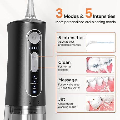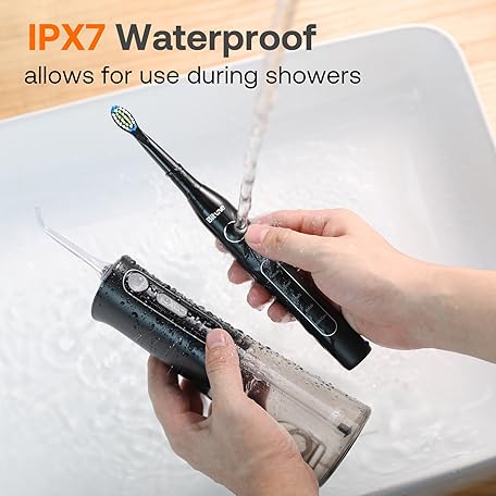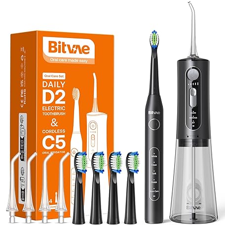 Thông tin sản phẩm Bitvae Elegant Black Oral Irrigator and Electric Toothbrushes Combination, 3 Modes & 5 Pressure Levels Oral Irrigator Wireless with 5 Modes Sonic Toothbrush, Includes 4 Toothbrush Heads and 4 Jet