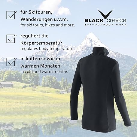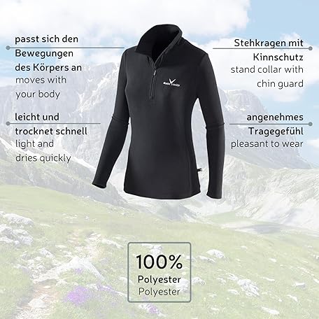Thông tin sản phẩm Black Crevice Women's Fleece Ski Jumper, Women’s Sizes, Women's Functional Shirt, with Zip, Midlayer Made of 100% Microfleece