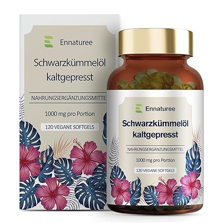 Black Cumin Oil Capsules with Vitamin E, Natural and Cold Pressed, Black Cumin Oil, 1000 mg per Daily Dose, High Dose, Vegan, 120 Capsules, German Premium Quality