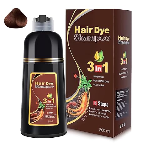 • Black Hair Shampoo, Haarfärbeshampoo 3 in 1, Halbpermanente Haarfarbe, 100% Graue Haare Abdecken, Haarfärbemittel für Frauen und Männer, 500ML Haarfarbe Schwarz (DarkBrown)