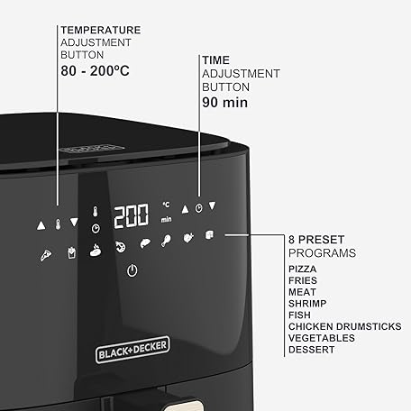 Sản phẩm Black+Decker - Hot Air Fryer BXAF5000E | 1300W | 5L Capacity | 8 Preset Programmes | 99% Fat Reduction | Non-Stick Basket, Easy to Clean đang được bán với giá ưu đãi là $78.7307 tại nước Đức.