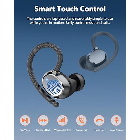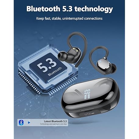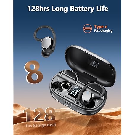 Thông tin sản phẩm Bluetooth Headphones Sport, 2025 In-Ear Headphones Wireless Bluetooth 5.3 with HD Mic, Outstanding Sound, 128 Hours Playtime, Comfort Fit, Dual LED Display, IP7 Waterproof Earphones with Ear Hooks