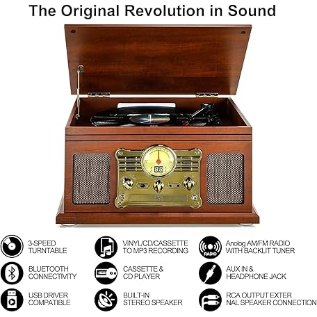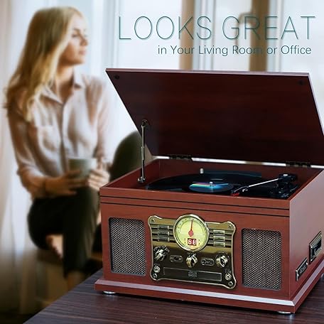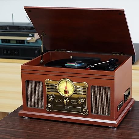 Sản phẩm Bluetooth Turntable with Stereo Speakers, Support Vinyl to MP3 Recording Converter with CD, Cassette Player, FM, Aux-In and Headphone Jacks đang được bán với giá ưu đãi là $108.4223 tại nước Đức.