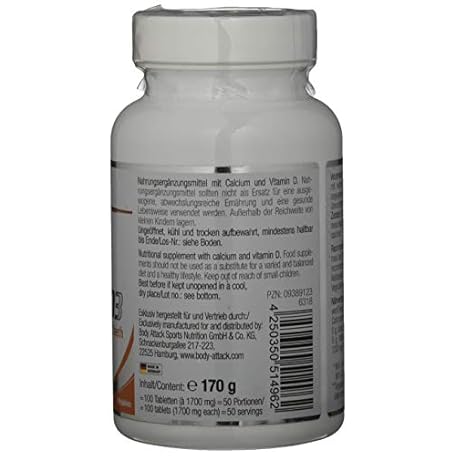 Sản phẩm Body Attack Calcium+D3, 100 Tabletten, 1er Pack (1x 170g), Dose đang được bán với giá ưu đãi là $12.5895 tại nước Đức.