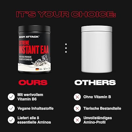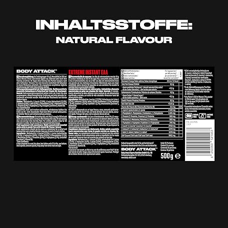Thông tin sản phẩm Body Attack Extreme Instant EAA Powder - Natural, 500 g - Vegan, Made in Germany - 8 Essential EAA Amino Acids for a Protein Rich Diet & Intensive Training - Ideal 2:1:1 Ratio