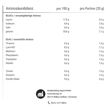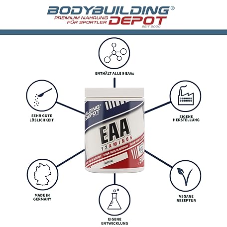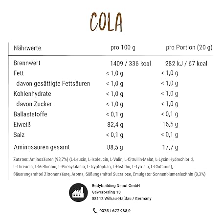 Sản phẩm Bodybuilding Depot - EAA powder 500 g - cola | vegan formula | contains all important amino acids | EAAs in high concentration đang được bán với giá ưu đãi là $42.4446 tại nước Đức.