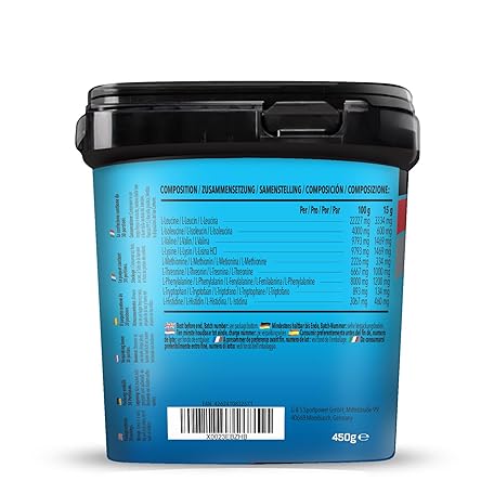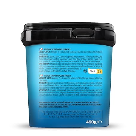 Thông tin sản phẩm Bodylab24 Bodybuilder EAA Blackberry 450g, EAA Powder with 9 Essential Amino Acids, All BCAA & EAA Included, Delicious Fruity Flavour
